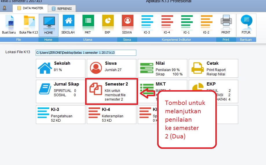 Cara memunculkan keterangan kenaikan kelas aplikasi raport K13 Profesional